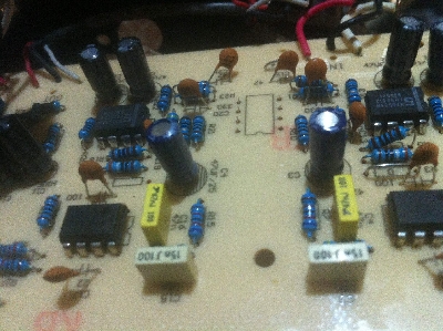 des Phono-Teils, pro Kanal arbeiten zwei Operationsverstärker.