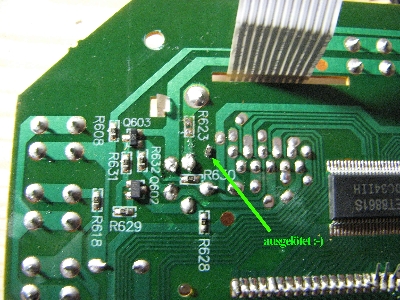indem ich den Widerstand R623 (68 Ohm) etwas höher mache,