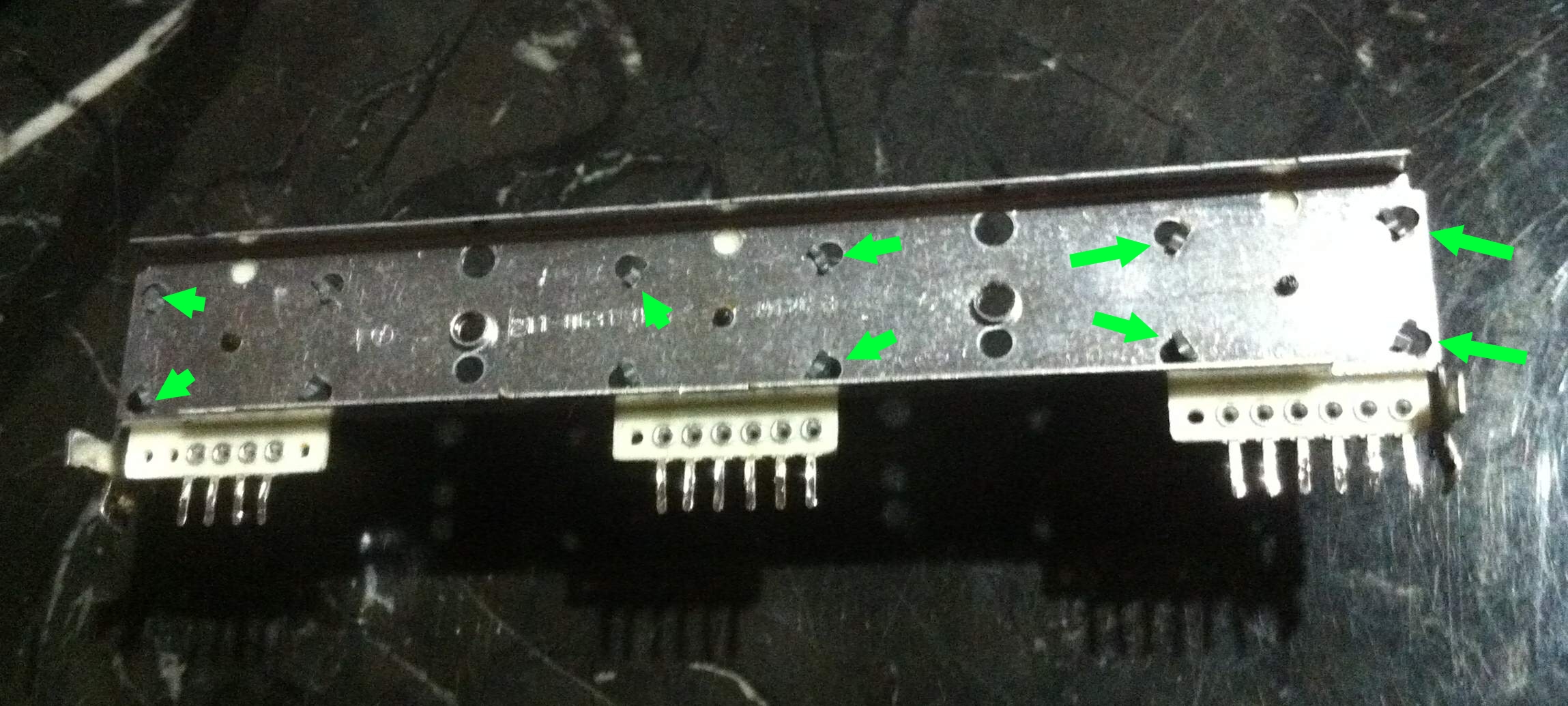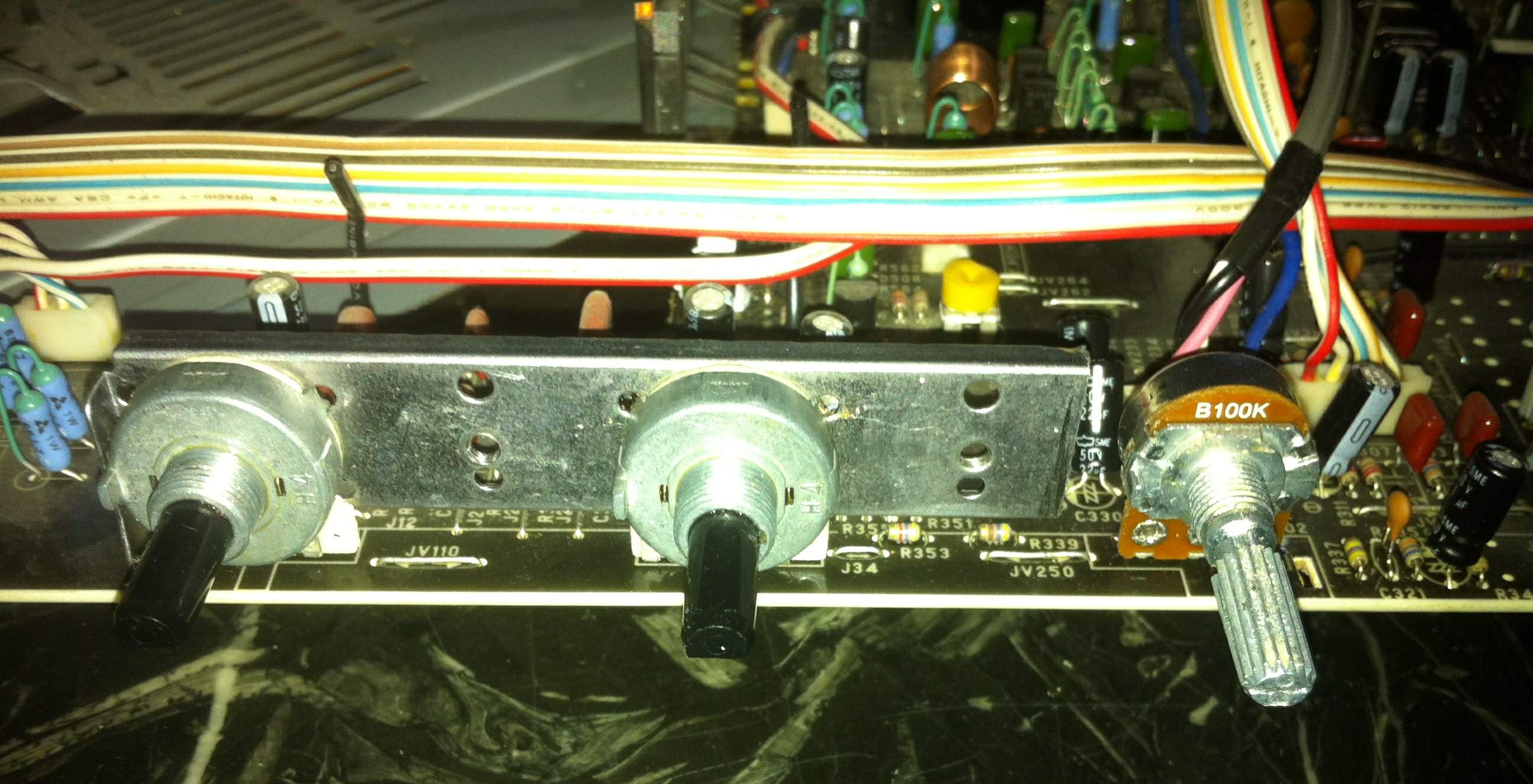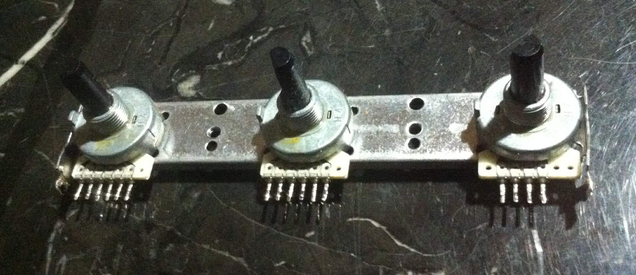 alle drei Potentiometer sind auf einer Art Befestigungsschiene