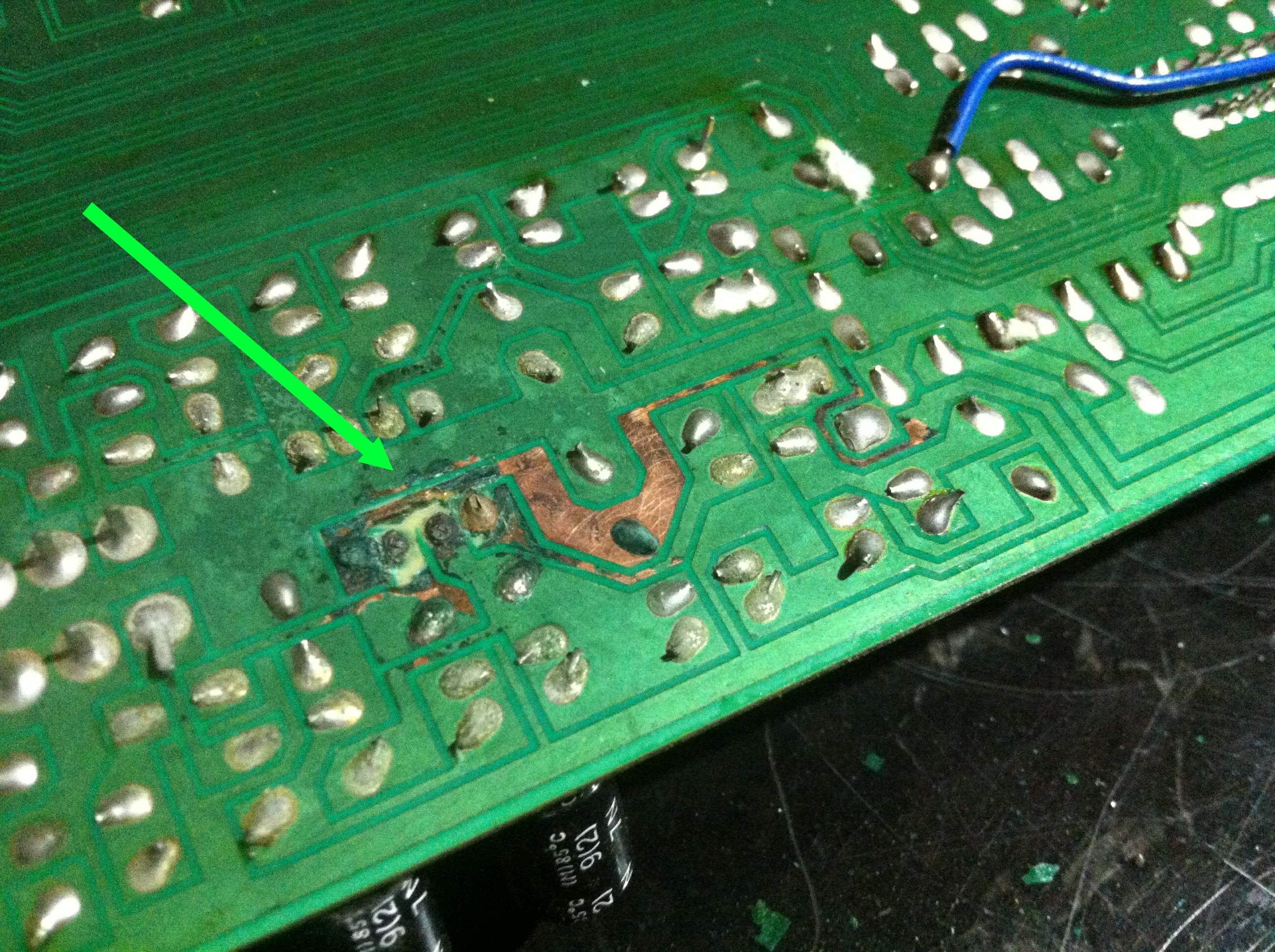 da die Kondensatoren zu lange die Leiterplatte geschädigt hatten :-(