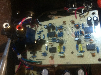 Auf dem Phono-Verstärker Board sieht man deutlich die Kanal-getrennte Schaltungsanordnung