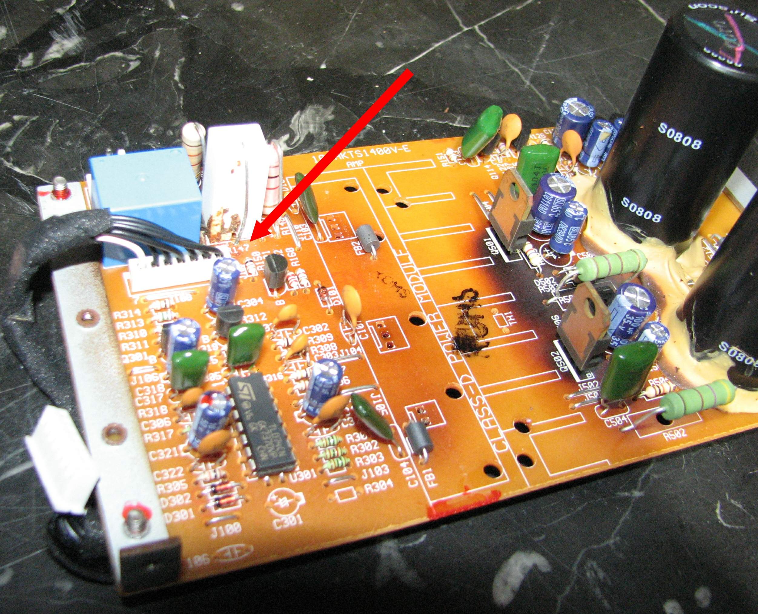 Dasselbe Bild im Inneren der Endstufe, auch hier wurde diese entfernt.