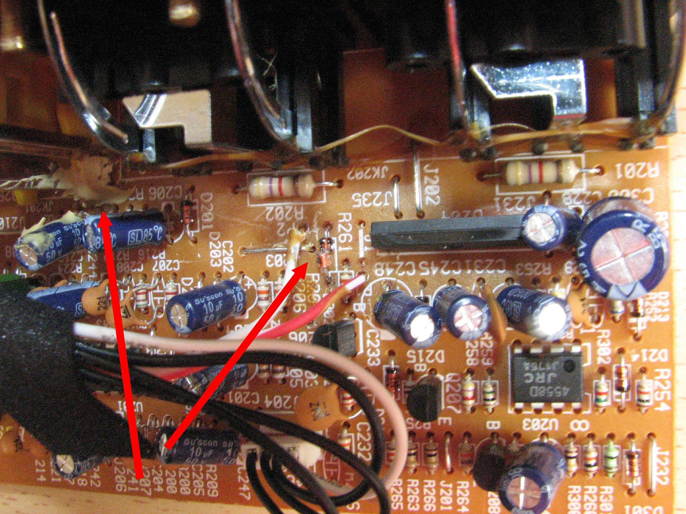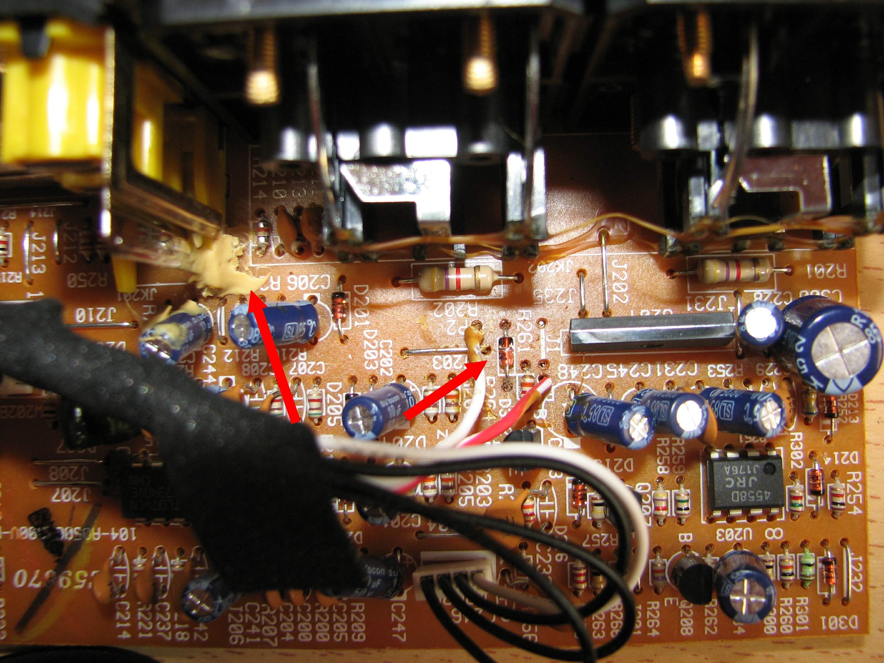 Leitfähige Masse auf der Oberseite der Vorverstärker Leiterplatte,