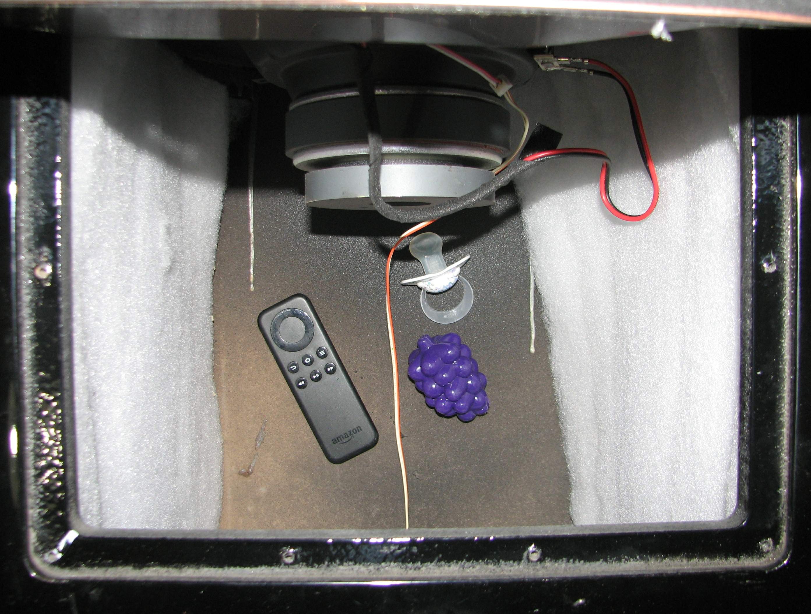 Lustigerweise verbergen sich ein paar Fundsachen im Subwoofer,