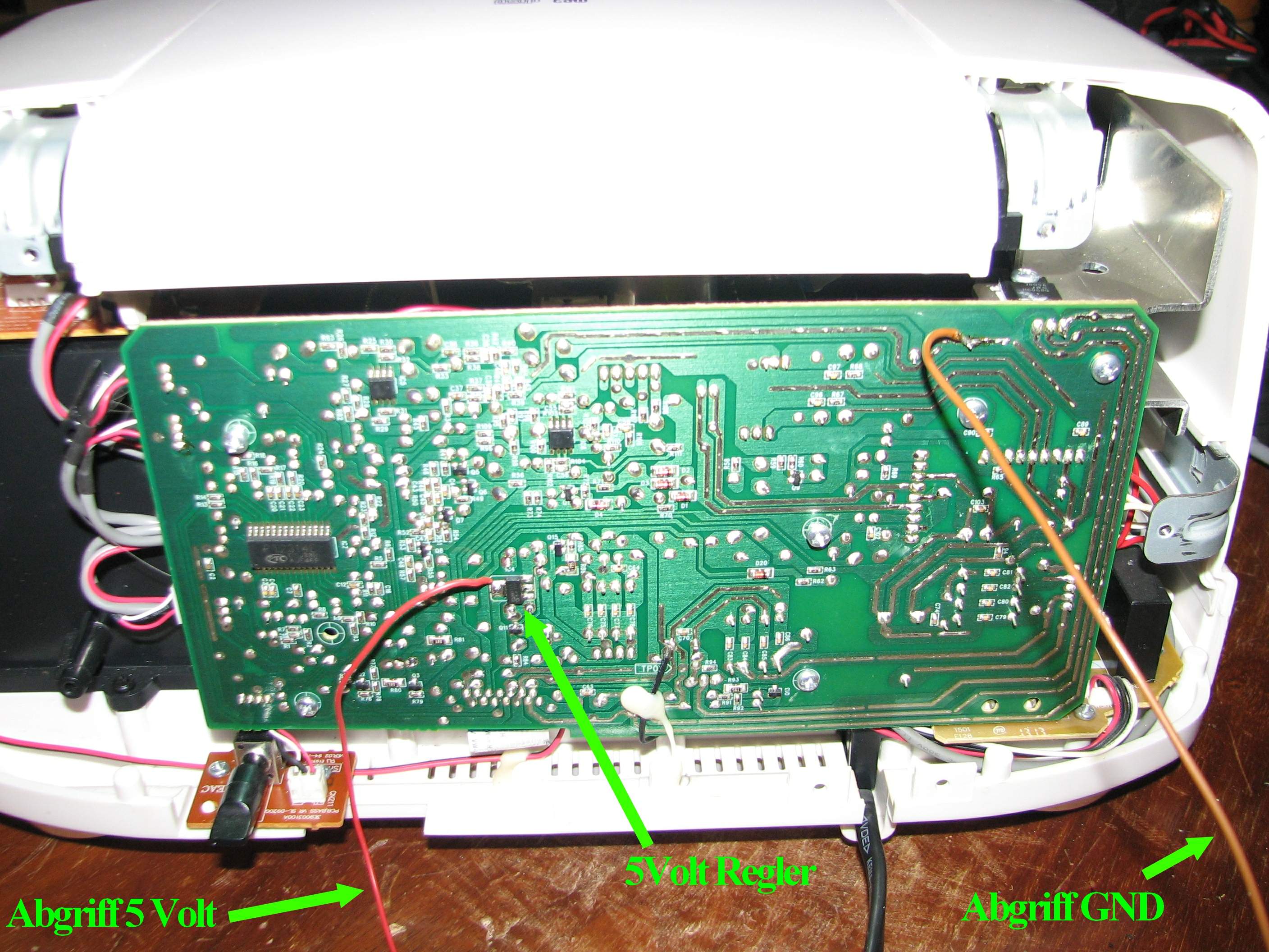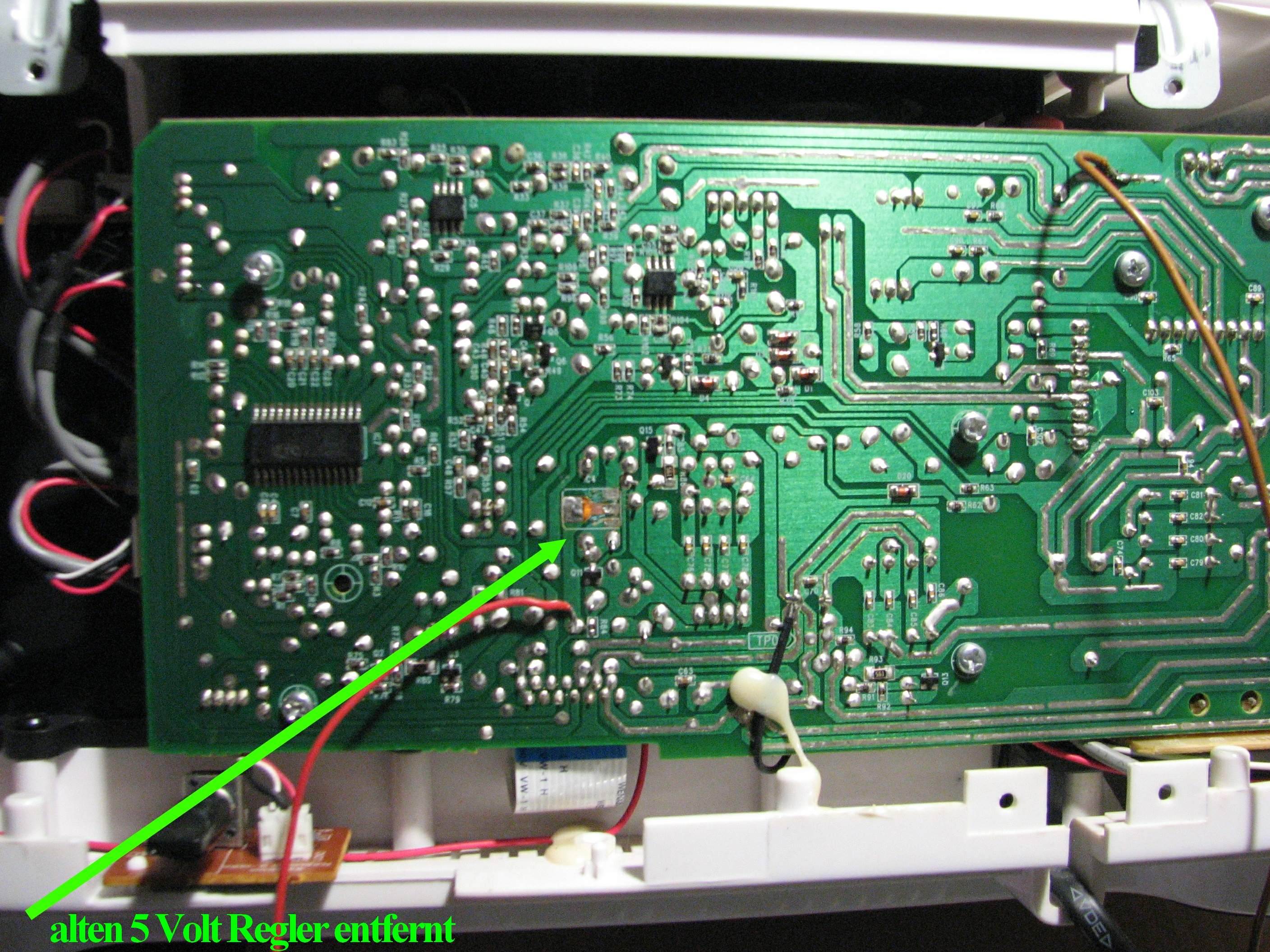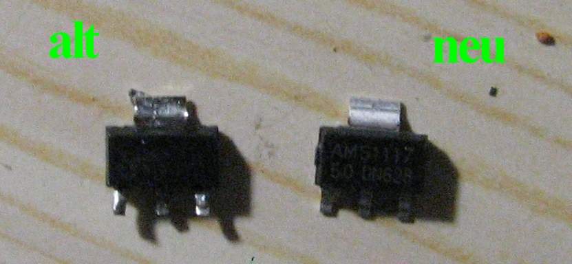 Der originale und anscheinend defekte 5 Volt Regler liegt noch hier,
