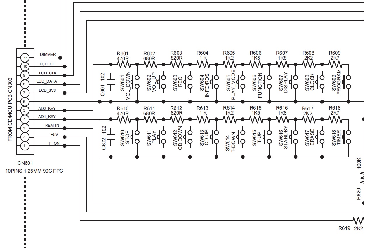 Es handelt sich bei der Tastenabfrage um eine Art Multiplexing verschiedener Festwiderstände,