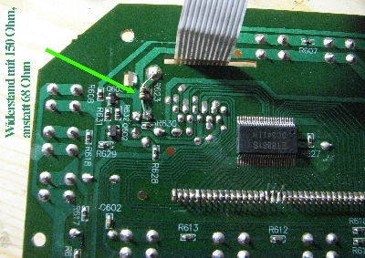 indem ich den Widerstand R623 (68 Ohm) etwas höher mache,