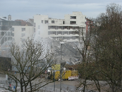 Video der Sprengung / Sicht vom Maximilian-Hotel