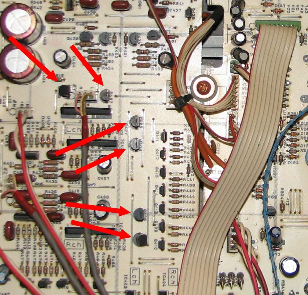 Gruppe von Transistoren, der rote Kreis im Bild,
