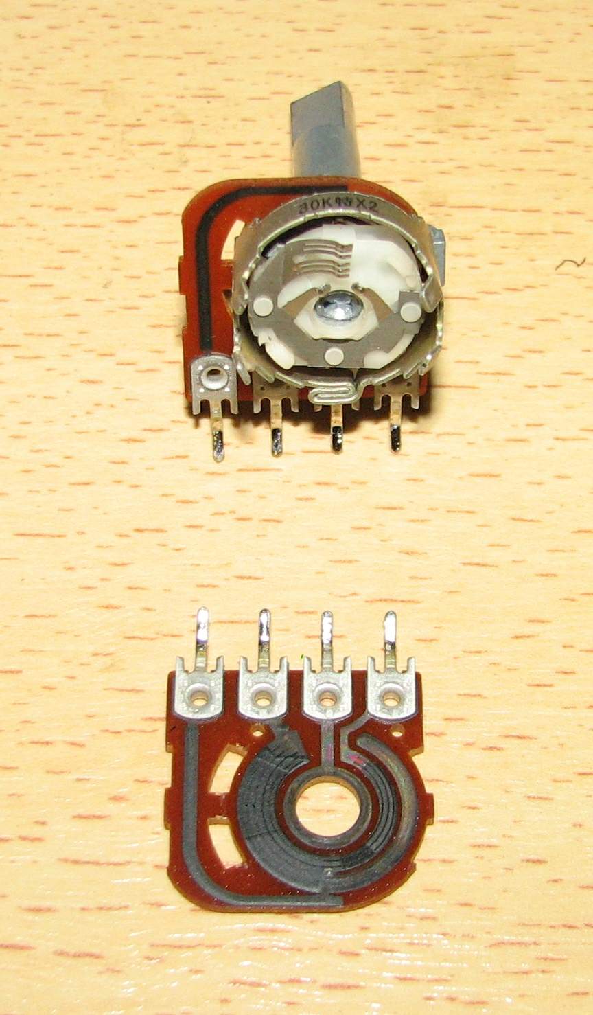 zwischen den Schleifern und den Kohleschicht-Bahnen des Potis,