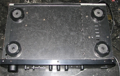 Das Bass-Poti liegt unter der Grundplatte des Transformators,
